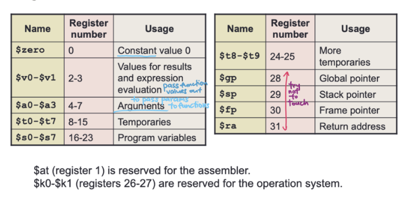 $v0and$v1are used by functions to return values.