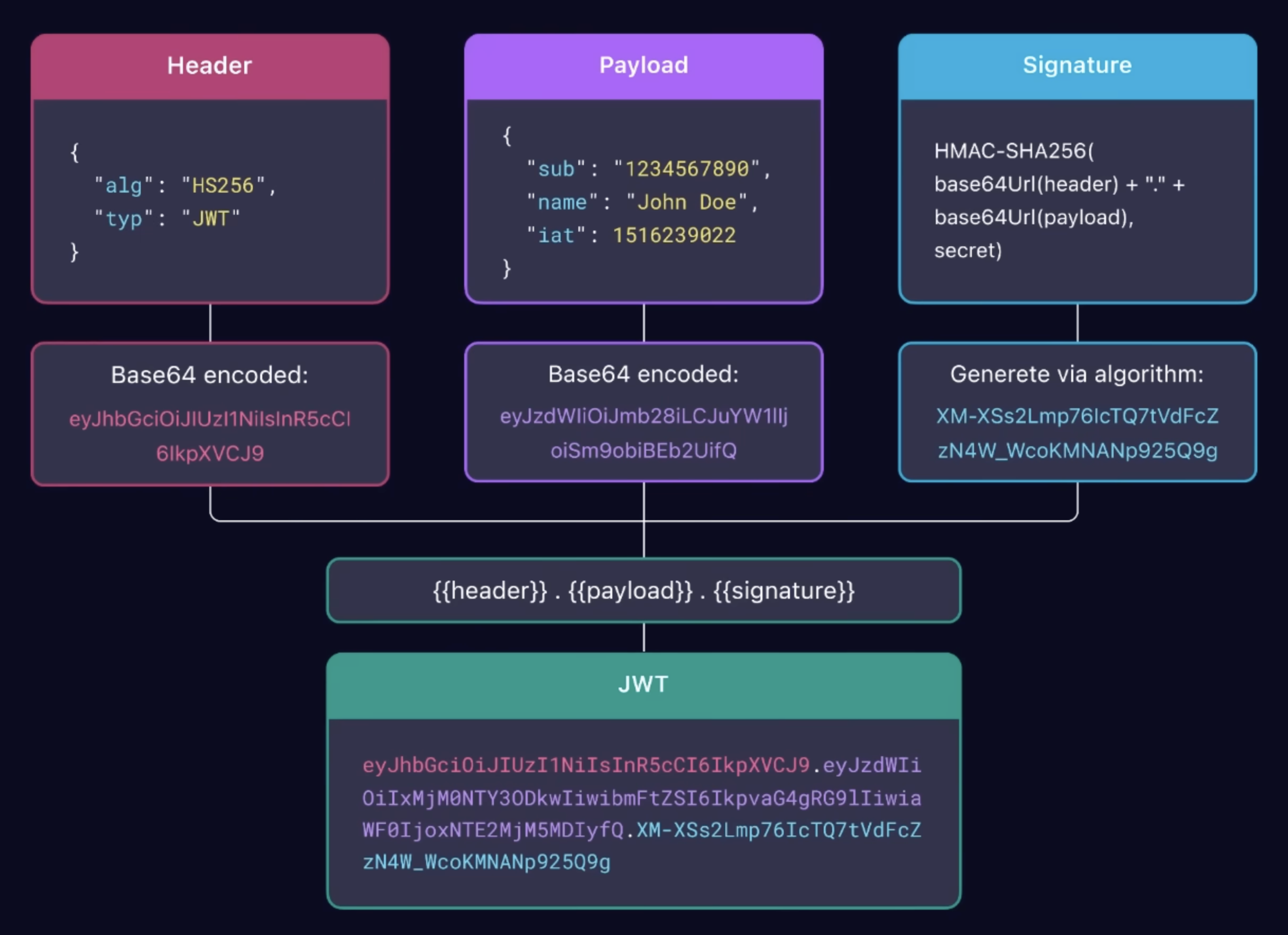 - A Digital Signature made from JWT Header and JWT Claims, the purpose is to verify the integrity of the JWT